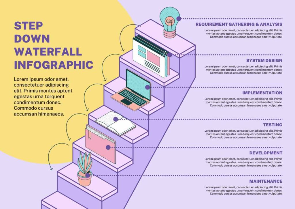 Si deseas más plantillas parecidas a Infografía de cascada bajada, puedes visitar nuestro listado completo de Slides de la categoría Infografías.