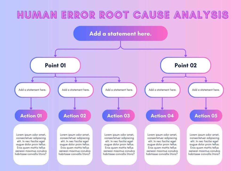 Si deseas más plantillas parecidas a Infografía del análisis de la causa raíz del error humano, puedes visitar nuestro listado completo de Slides de la categoría Infografías.