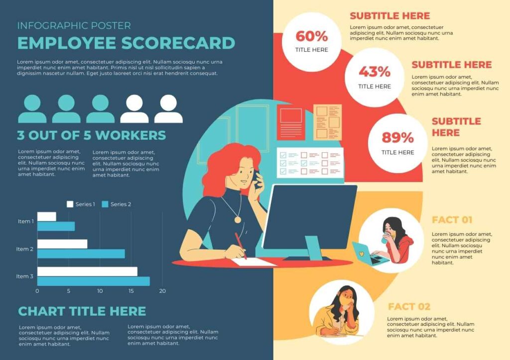 Si deseas más plantillas parecidas a Infografía del cuadro de mando de los empleados, puedes visitar nuestro listado completo de Slides de la categoría Infografías.